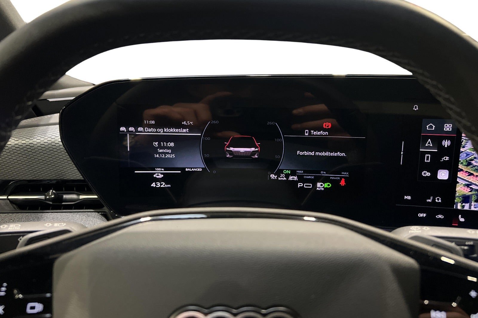 * Adaptiv kørselsassistent plus (herunder adaptiv fartpilot) * Forsæder med elektrisk indstilling * Memoryfunktion for førersædet og sidespejlene * Matrix LED-forlygter * Digitale lyssignaturer * Sideairbags bagi * Vognbaneafvigelsesadvarsel inkl. nødsituationsassistent * Proaktiv passagerbeskyttelse til front, side og hæk * MMI-passagerdisplay * e-tron sportslyd (kan frakobles via Audi Drive Select) * Holdeassistent * Sidespejle med elektrisk indstilling, varme og indklapning, automatisk afblænding i begge sider * Omgivelseskamera * Adaptiv fartpilot * Parkeringsassistent Plus * Komfortnøgle * Digitalnøgle (til iOS/android) * 3 zoners klimaanlæg * Elektrisk ladeklap * AC ladetilslutning på begge sider af bil * Akustiske sideruder foran * Interiør med sportssæder i sort stof * Vognbaneafvigelsesadvarsel * Frontbagagerum * Fjernlysassistent * USB-porte med ladefunktion på første og anden sæderække * Varmepumpe * Vognbaneafvigelsesadvarsel