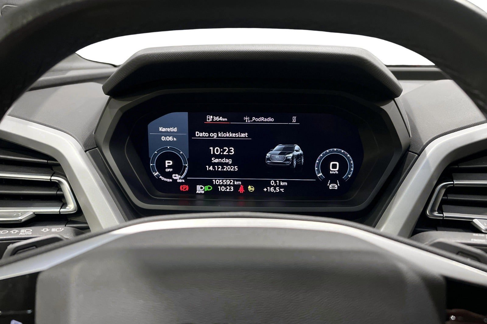 * Udvalgt standardudstyr * Dansk bil fra ny * Varmepumpe * Adaptiv fartpilot * Audi Smartphone Interface med trådløs Apple CarPlay * Parkeringssensor (for) * Parkeringssensor (bag) * Elektrisk bagklap * Elektrisk børnesikring * Digital cockpit * Højdejusterbare forsæder * Udvendig temperatur måler * Regnsensor * Sædevarme * 4x el-ruder * Dæktryksmåler * Elektrisk parkeringsbremse * Træthedsregistrering * DAB radio * Musikstreaming via bluetooth * Armlæn * Isofix på passagersæder og bagsæde * Bagagerumsdækken * Kopholder * Splitbagsæde * Automatisk lys * Vognbaneassistent * Automatisk nødbremsesystem * Bakkamera