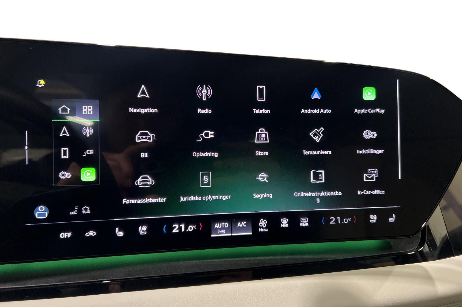 * Progress udstyr / standard udstyr: * Dansk bil fra ny * Varme i rat * Sædevarme foran og bagi * Elektrisk ladeklap i begge sider * Akustiske sideruder foran * Navigation med ruteplanner * Komfortparkeringsklimafunktion (Opvarmning af kabinen via App.) * Varmepumpe * Adaptiv fartpilot * Omgivelseskamera / 360 kamera * Audi Smartphone Interface med trådløs Apple CarPlay * Vognbaneskiftadvarsel inklusive udstigningsadvarsel og assistent til registrering af tværgående trafik bagved * Forreste dørruder med akustikglas * Parkeringssensor (for og bag) * Elektrisk bagklap * Digital nøgle via mobiltelefon * Komfortnøgle * Fuldautomatisk klimaanlæg * Multifunktionslæderrat * Elektrisk børnesikring * Kamerabaseret vejskilteassistent * Audi MMI panoramic display (digital cockpit) * Højdejusterbare forsæder * Dæktryksmåler * Elektrisk parkeringsbremse * Træthedsregistrering * DAB-radio * Musikstreaming via bluetooth * Isofix på passagersæder og bagsæde * Bagagerumsdækken * Kopholder * Splitbagsæde * Automatisk lys * Vognbaneassistent * Automatisk nødbremsesystem * 5 års fabriksgaranti fra 1. registreringsdato eller 150.000 km.